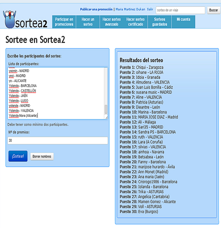 Ya sabéis que los únicos requisitos para participar era residir en España y inscribirse usando el formulario que se incluía en el post. Se recogieron un total de 549 inscripciones para participar en el sorteo. He utilizado Sortea2 para elegir al azar 30 ganadores, y este ha sido el resultado:
