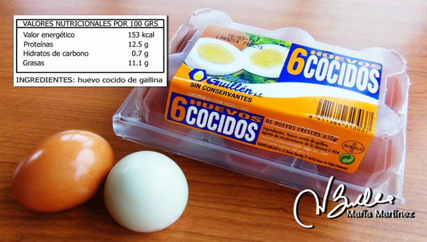- Le quitamos la cáscara a un huevo duro: yo cuezo tres o cuatro de un tirón y los guardo en la nevera hasta una semana. Los que se compran ya cocidos duran 1 mes en la alacena, así que también son una muy buena opción.