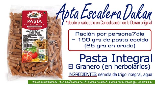 - hasta 190 gramos de pasta integral cocinada al dente o 170 gramos de pasta blanda